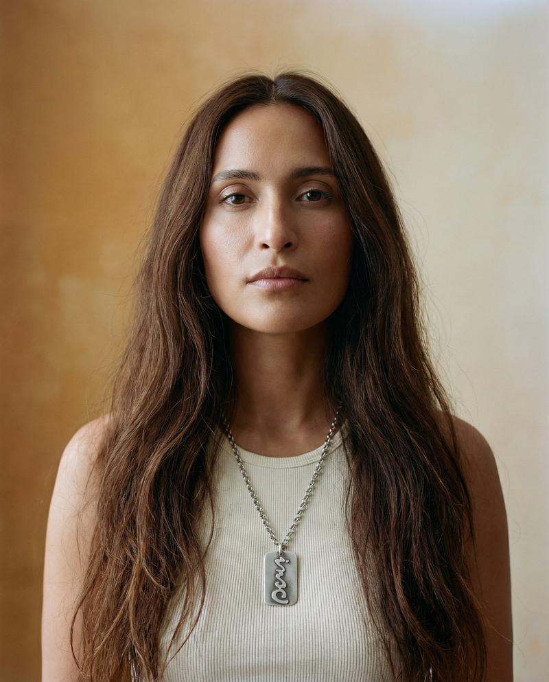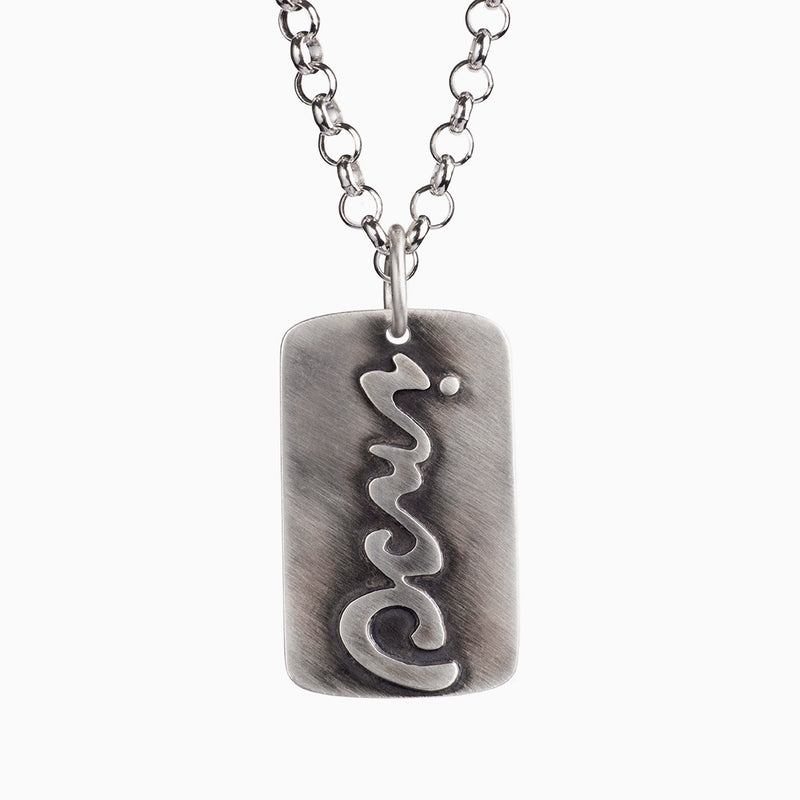Hand cut overlay on brushed finish. Oxidized.